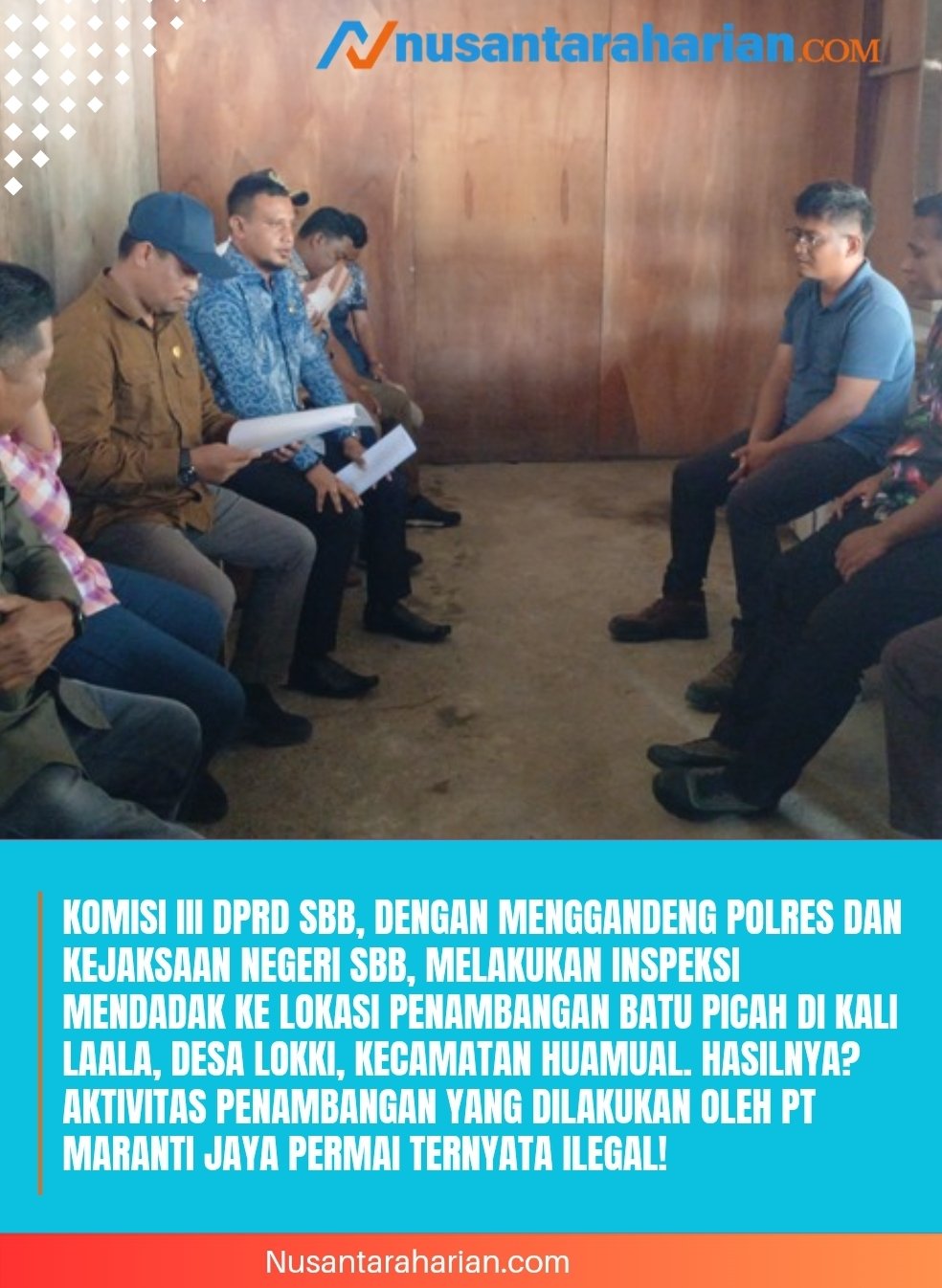 Huamual,Maluku, Nusantaraharian.com- Sebuah fakta mencengangkan terungkap di Kabupaten Seram Bagian Barat (SBB) hari ini. Rabu 29 Oktober 2025 Komisi III DPRD SBB, dengan menggandeng Polres dan Kejaksaan Negeri SBB, melakukan inspeksi mendadak ke lokasi penambangan batu picah di Kali Laala, Desa Lokki, Kecamatan Huamual.